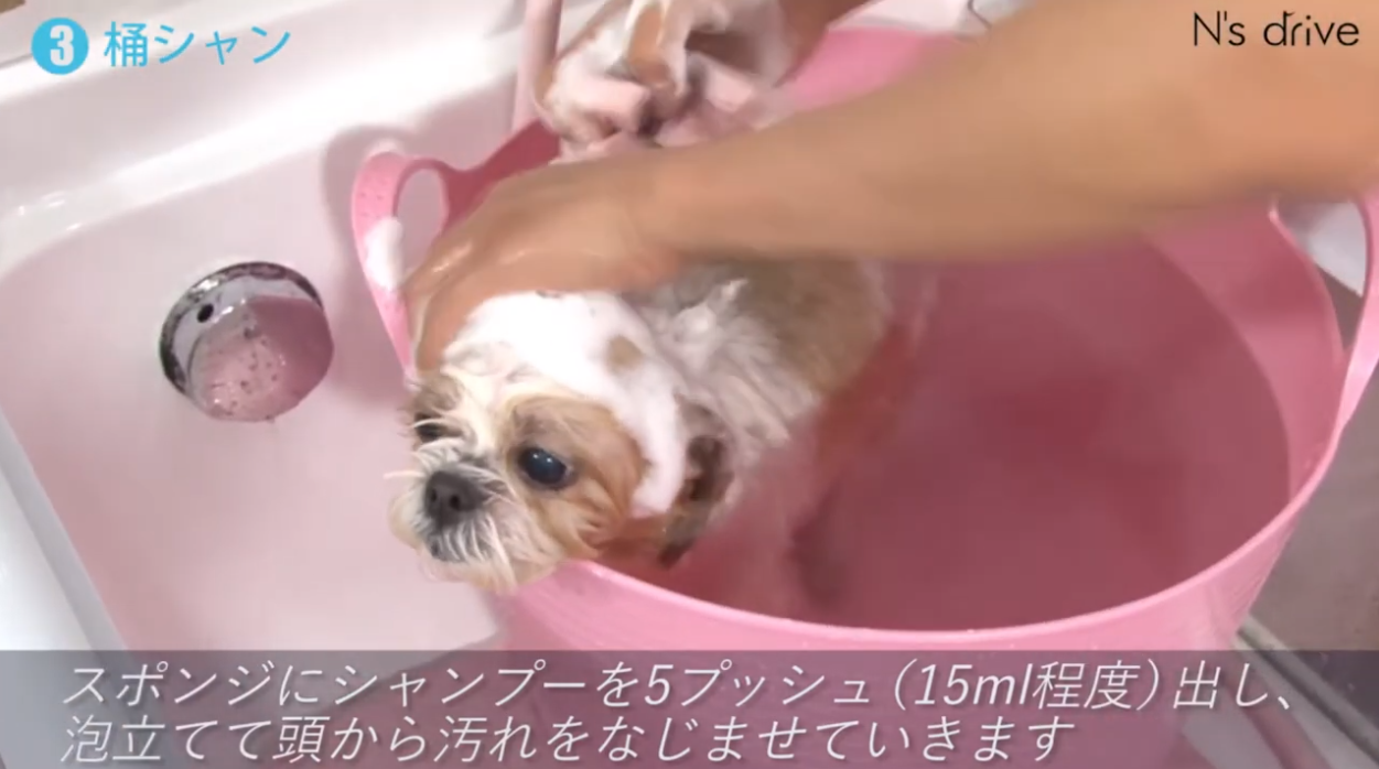 桶や洗面器などにお湯とシャンプーを入れ、スポンジなどで良く泡立てます。